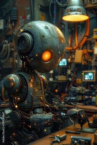 Fototapeta premium Rusty Robot Working in Workshop