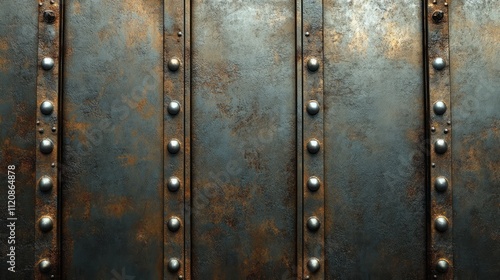 Fototapeta premium Rusty steel plate background with rivets and textured surface for industrial design or vintage themes
