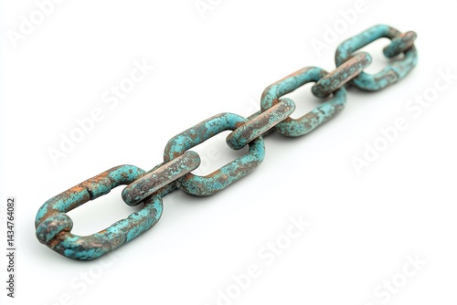 © Agri, Obraz premium Rusty teal chain links against a white background.