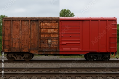 Obraz premium Rusty train car before and after restoration