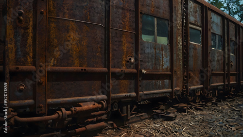 © kann, Obraz premium Rusty Train Car Close Up Side View