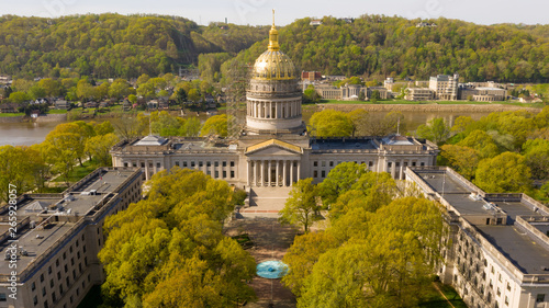 © Christopher Boswell, Fototapeta premium Rusztowanie otacza pracowników wspierających kopułę w Charleston w zachodniej Wirginii