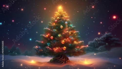 Naklejka premium Árvore de Natal iluminada colorida