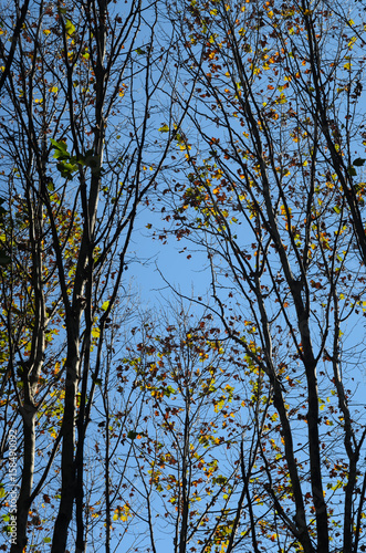 © emoraes, Fototapeta premium árvores com folhas douradas sob céu azul em um parque de São Paulo