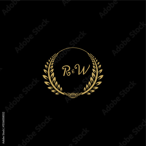 Fototapeta premium RW beautiful feminine and elegant wedding monogram initial logo with circle floral gold