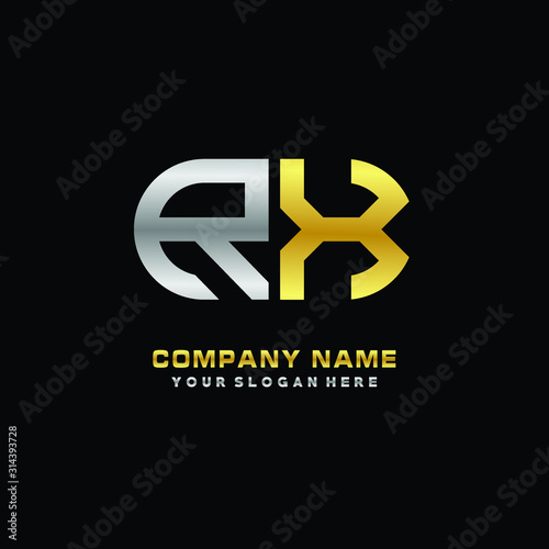 Fototapeta premium RX initial letters looping linked oval elegant logo silver, gold