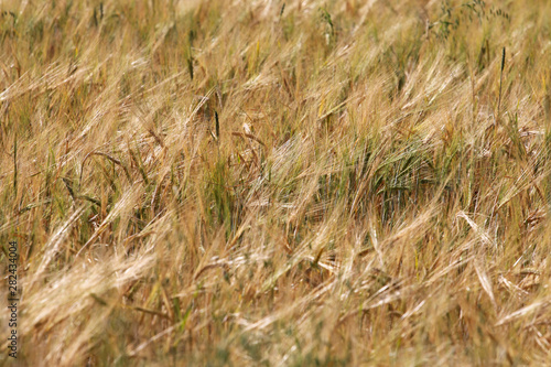 © Евгения Савина, Fototapeta premium Rye field background. Harvest concept. Agriculture, farming, landscape, grain, barley, ears