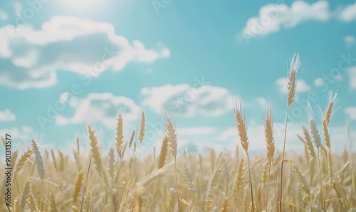© simba kim, Fototapeta premium Rye field scene with sunlight blue sky , Generative AI