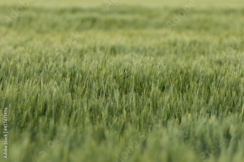 Obraz premium Rye, oats, wheat, Secale cereale, Avena, Triticum in an agricultural field, farmland, green cereal, rural landscape, vegan food, healthy food, beautiful grain ears