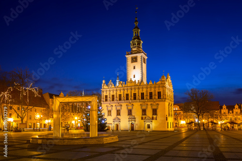 © Patryk Kosmider, Fototapeta premium Rynek Starego Miasta z zabytkowym ratuszem w Chełmnie nocą, Polska