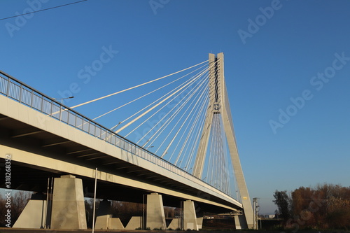 Obraz premium Rzeszow, Poland - 9 9 2018: Suspended road bridge across the Wislok River....