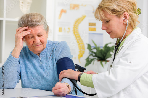 Obraz premium Ärztin misst den Blutdruck und Puls bei Patientin
