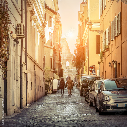 © Andrii IURLOV, Fototapeta premium RZYM. Ludzie na ulicy z widokiem na Koloseum w Rzymie, jeden z