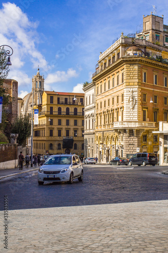 Fototapeta premium Rzym, 10.11.2019, ulica miasta z transportem przy słonecznej pogodzie w południe