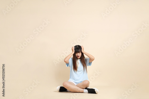 Fototapeta premium 20s Asian Woman in Light Blue Shirt and White Shorts