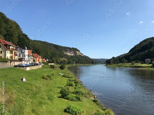 Fototapeta premium Sächsiche Schweiz Elbufer - Wanderung von oben