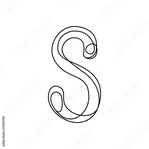 © Liubov, Obraz premium S. Continuous thin line letter S. vector illustration alphabet symbol with one line, minimalistic simple first letter name icon, logo