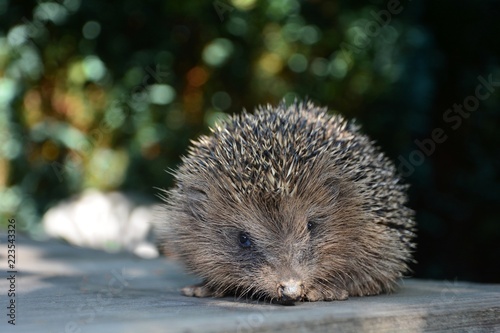 © Claudia Evans , Obraz premium Süßer Igel von vorne, sitzt vor grünerm Natur Bokeh