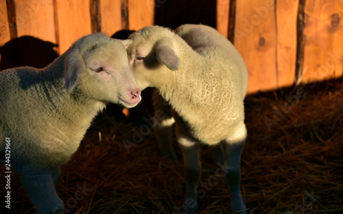 © leopictures, Obraz premium süßes junges lamm im Schafstall
