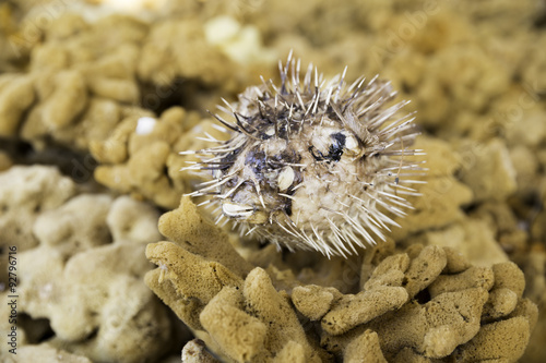 © tolgaildun, Obraz premium Süngerlerin üstündeki kurutulmuş balon balığı