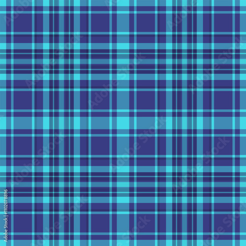 © SolaruS, Fototapeta premium 60s plaid background vector, sample check fabric pattern. British tartan texture seamless textile in cyan and blue colors.