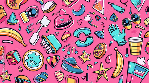 Fototapeta premium 90S Style Cool Stickers Collage Pattern. Pop Att Funky