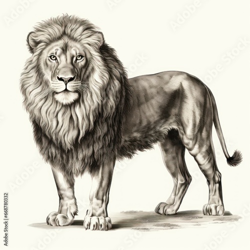 © Morphart, Obraz premium 1800s-style European lion vintage engraving on white background.