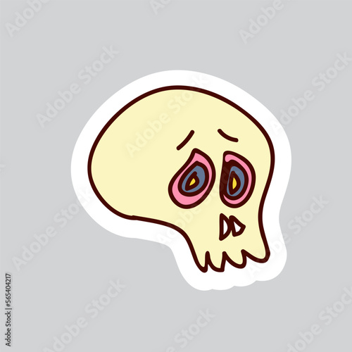 Fototapeta premium 70s styles vector doodle sticker. Psychedelic skull