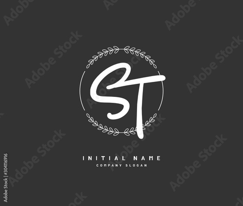 Fototapeta premium S T ST Beauty vector initial logo, handwriting logo of initial signature,...