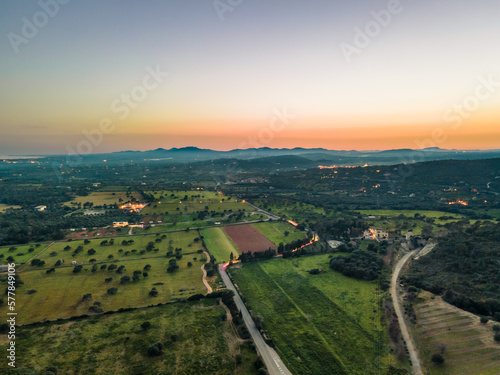 Naklejka premium Sa Coma, Mallorca Fields, Aerial Photo, Late Evening