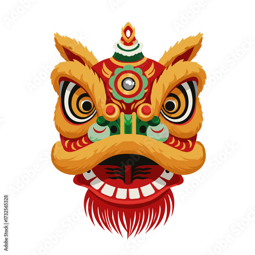 Fototapeta premium SA stylized flat illustration of a head in a Lion Dance costume