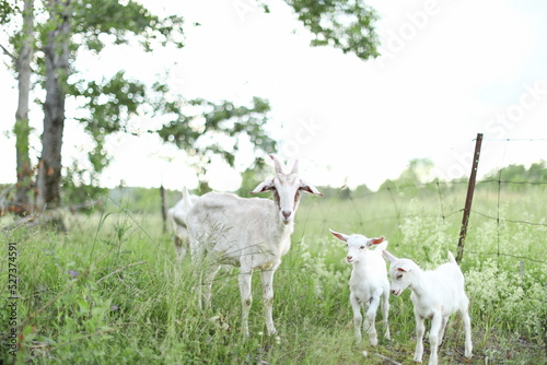 © Erika Norris, Obraz premium Saanan and alpine goats on a small farm in Ontario, Canada.