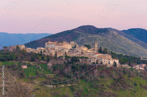 © ValerioMei, Fototapeta premium Sabina (Włochy) - Krajobraz obszaru w prowincji Rieti, środkowe Włochy, od ruin opactwa San Martino w Fara Sabina. W szczególności: Fara w mieście Sabina