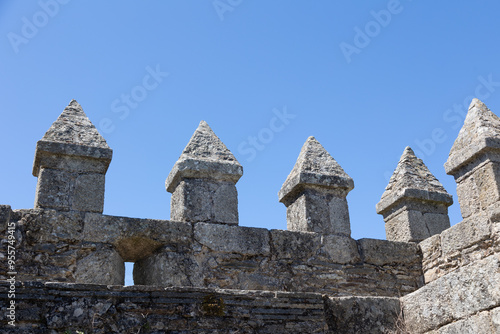 Naklejka premium Sabugal Castle in Portugal features imposing stone walls and a historic stone...