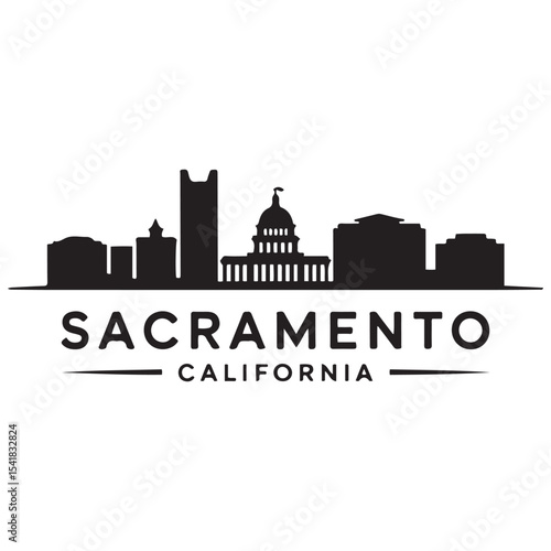 © firoz, Obraz premium Sacramento city skyline horizontal banner. Sacramento city, California USA. Vector template for your design. Vector black silhouette. with white background