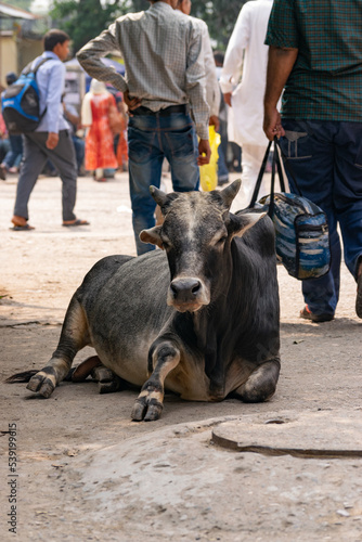 Fototapeta premium Sacred animal coexisting among city people in India