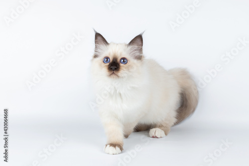 © vadimborkin, Obraz premium Sacred Birman kitten on a light background, birma