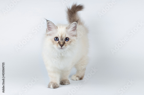 Fototapeta premium Sacred Birman kitten on a light background, birma