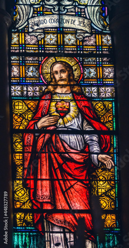 Fototapeta premium Sacred Heart Jesus Stained Glass Maria Sanctuary Auxiliadora Punta Arenas Chile