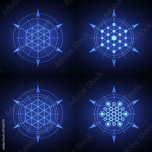 Fototapeta premium Sacred hexagonal geometry element on a blue background.