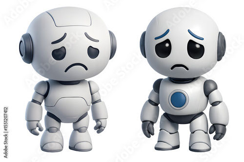 © Aiwonders, Fototapeta premium Sad AI Robot Character 3D Rendering Isolated on Transparent Background PNG