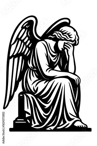 © Hira, Obraz premium Sad and Weeping Angel Sculpture - Symbol of Grief and Religion