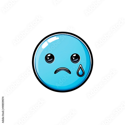 © SKY, Fototapeta premium Sad blue face emoji with a single tear