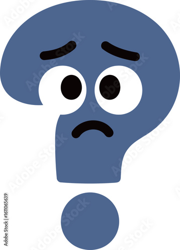 Fototapeta premium Sad blue question mark cartoon character with downturned eyes and mouth,...