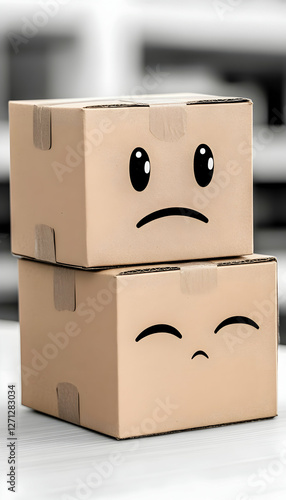 © Nadiyah, Obraz premium Sad cardboard boxes warehouse background delivery