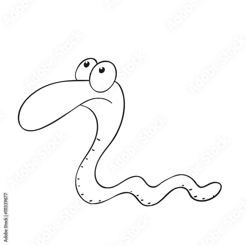 © hibousunart, Fototapeta premium Sad cartoon character worm coloring book. Vector isolated