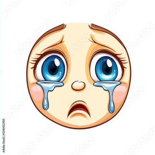 © Patchayanit , Obraz premium Sad Cartoon Face with Big Eyes and Tears Streaming Down Cheeks
