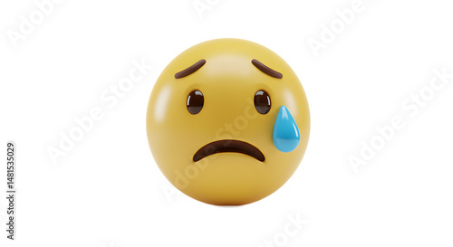 © Matheus, Fototapeta premium Sad Crying Emoji with Tear Falling Down on White Background