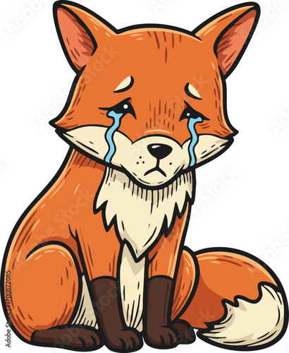 © OKAN, Obraz premium Sad crying fox sitting with tears on white background vector illustration in cute cartoon style