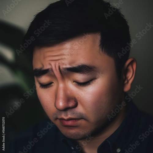 Obraz premium Sad depressed unhappy asian man close-up portrait